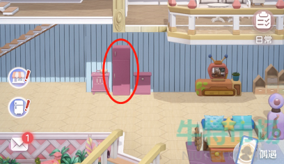 1、游戏当中冰箱一般位于一楼大厅的位置,如下图所示,点击一下即可开启冰箱。