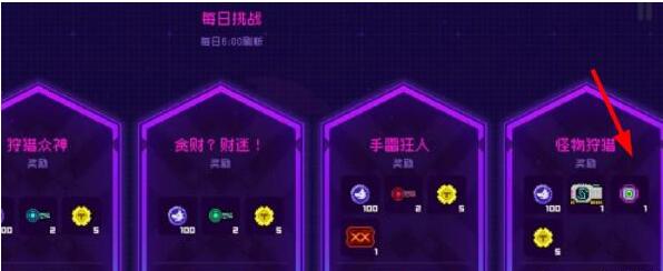 1、每日挑战:完成每天对应的挑战任务就能得到一个霓虹币。