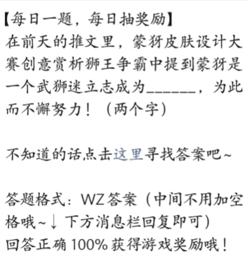 蒙狩是一个武狮迷立志成为什么-王者荣耀2023年1月31日每日一题答案
