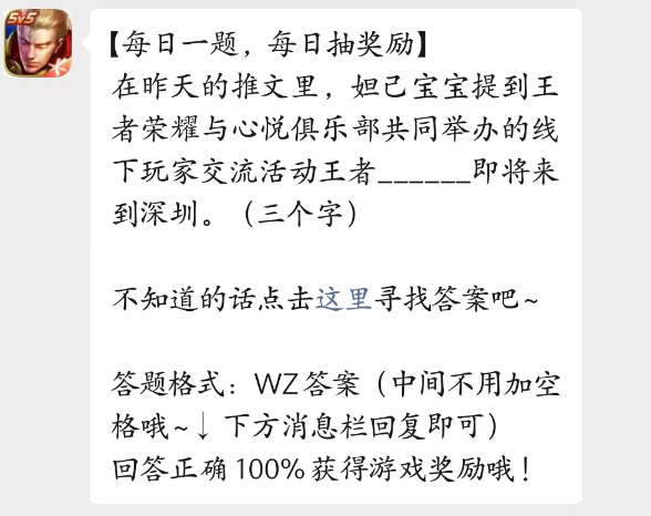 问题:王者荣耀与心悦俱乐部举办的线下活动王者?