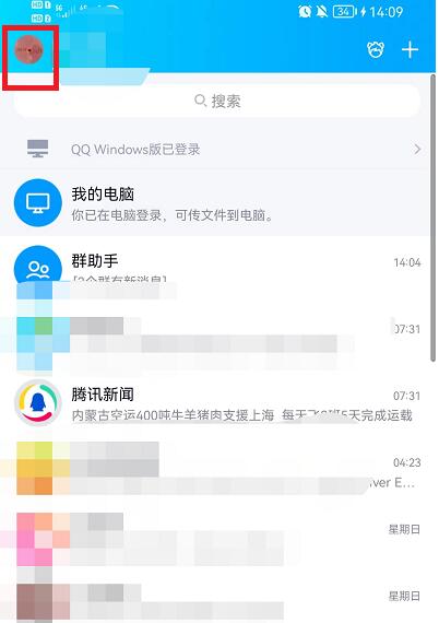 1、首先打开最新版本手机QQ客户端,点击右上方自己的头像。