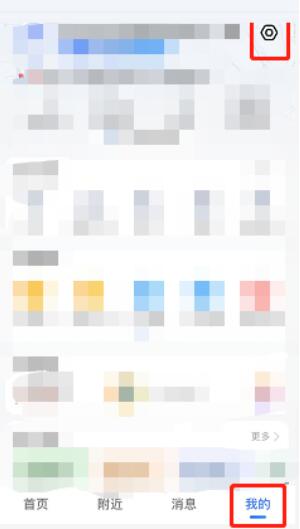 2、然后切换到【我的】页签,点击右上角设置图标进入;